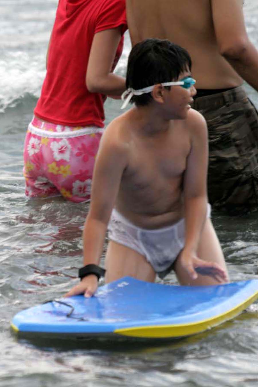 哇!弟弟真勇敢,竟然穿著內褲衝浪,小心不要被沖走啦 |