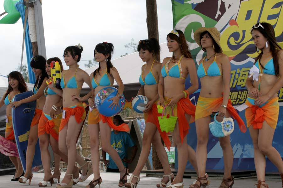 <<哈!可能酒喝多了,一聽到藍雨節的音樂,比妹們就直接在沙灘上熱舞起來 |