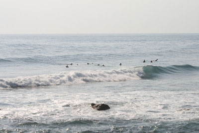 左側礁岩區有許多暗石,注意腳下小心划水,歪爆(wipeout)時保護頭部安全
